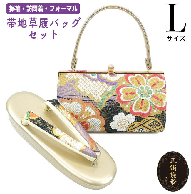 > Lサイズ 草履バッグセット 振袖用 西陣織 zb-780 成人式 卒業式 訪問着 金 ゴールド