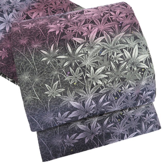 > 袋帯 中古 リサイクル 正絹 カジュアル 仕立て上がり 六通 全通 リバーシブル 植物文様 黒色 多色 きもの北條 A1158-11