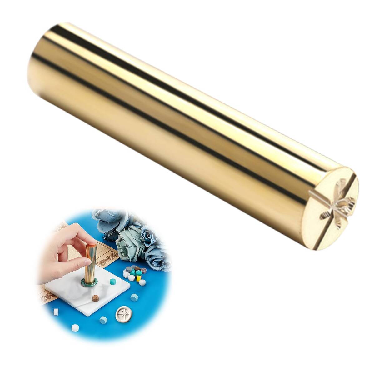 - 真鍮銅 円柱ハンドル 15mm ミニサイズ シーリングワックススタンプ ワックスシールスタンプ 蝶ネクタイの柄 シーリングスタンプ