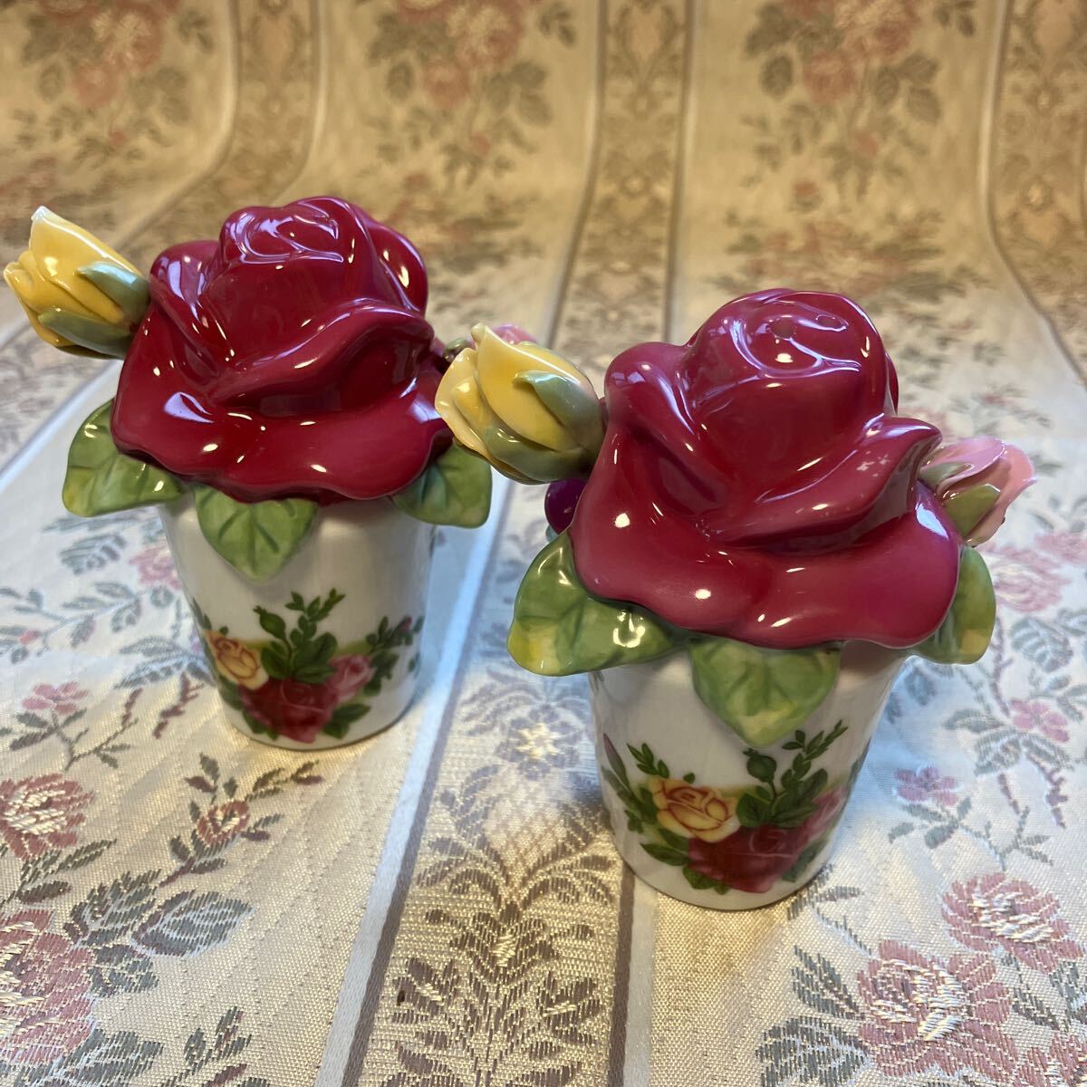 - 美品★ロイヤルアルバート オールドカントリーローズ ペッパー&ソルト 調味料入れ 置物 陶器製 希少
