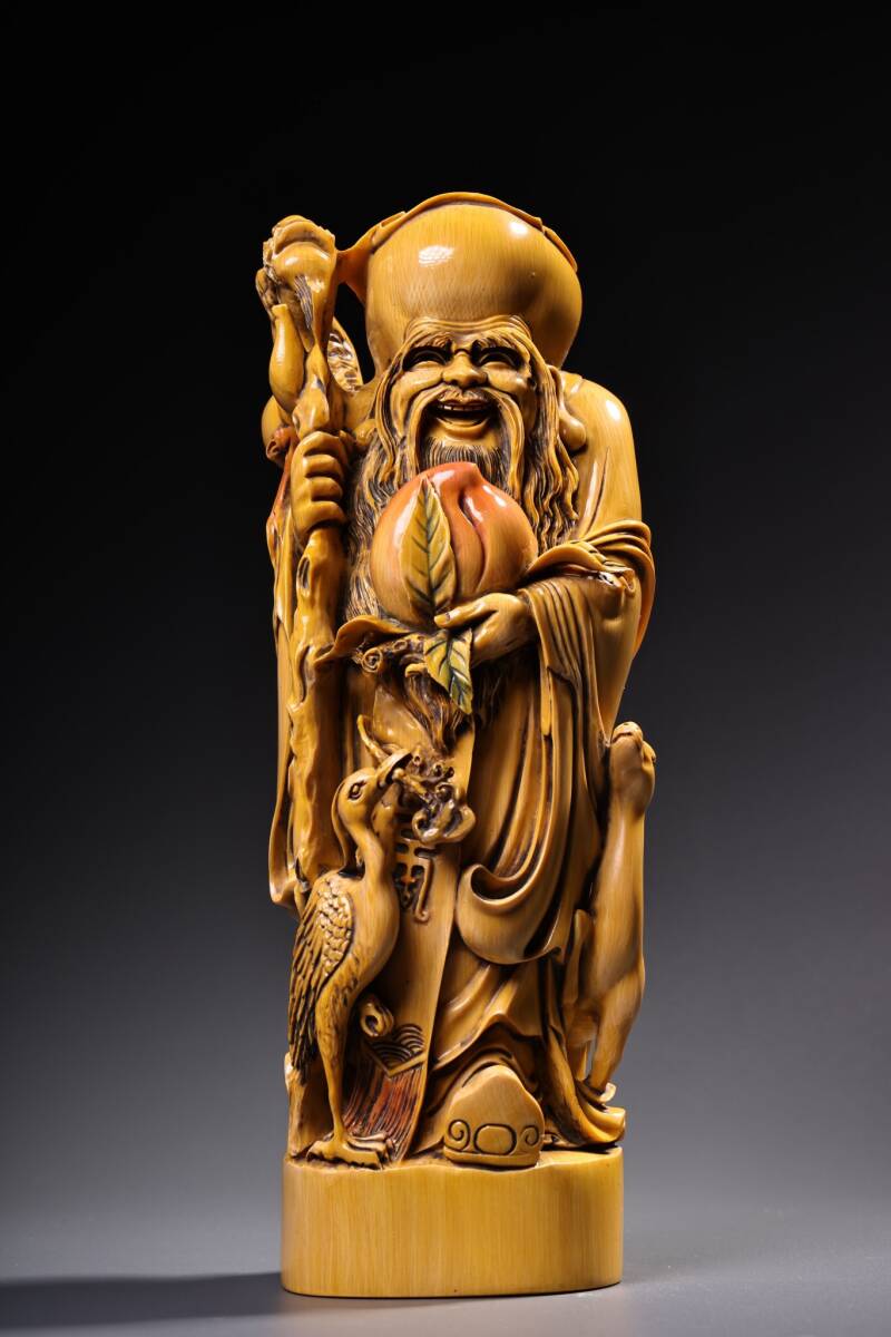 - ▽鴻▽ 牙材細密彫 寿星 置物 古賞物 中国古玩 中国古美術