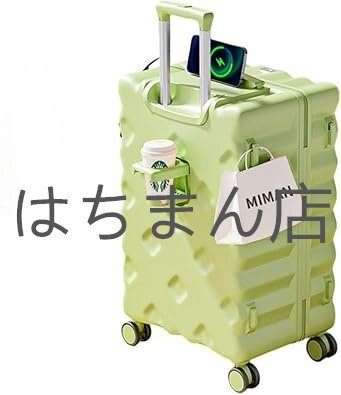 > スーツケース カップホルダー付き キャリーケース 機内持ち込み キャリーバッグ キャリーケース 充電器付き 緑です 24寸です