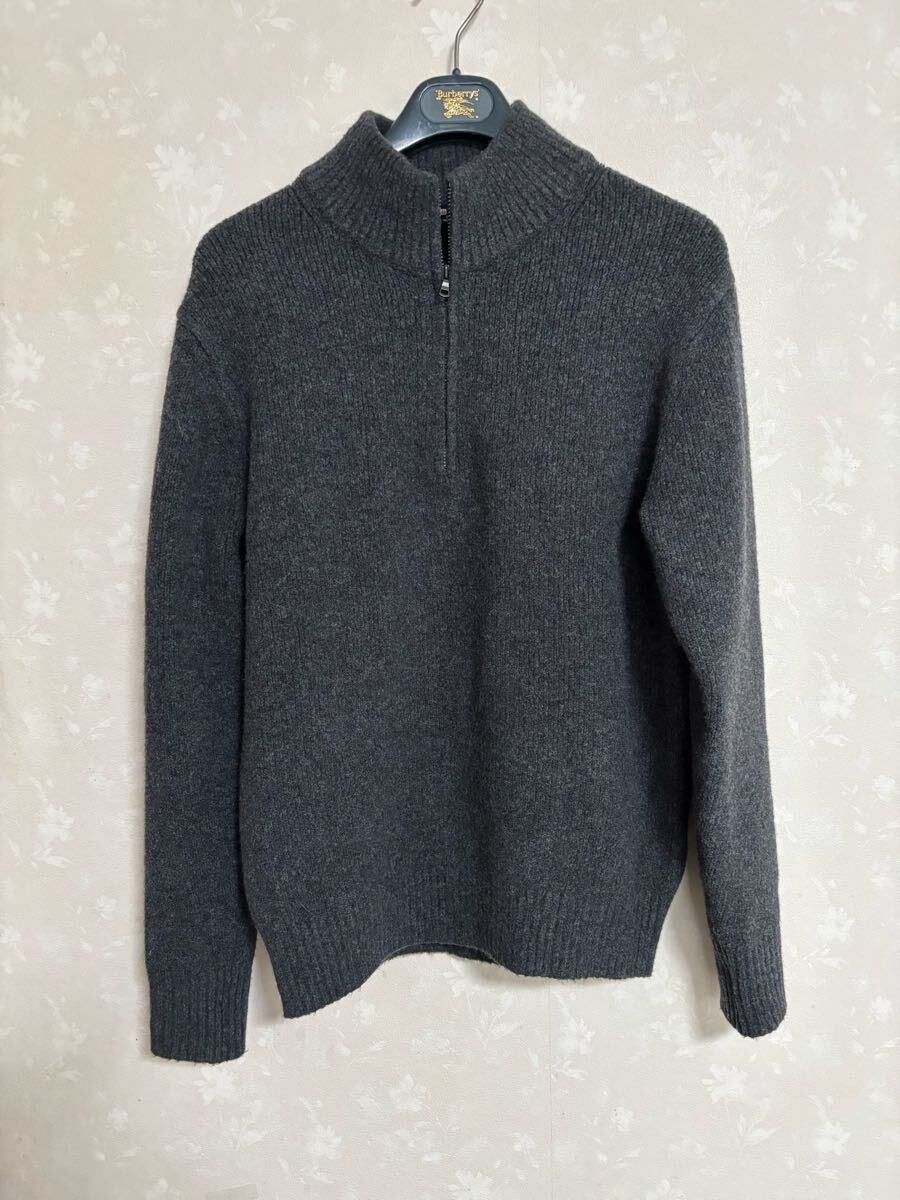 - 美品 ユニクロ メンズ ダークグレー ハイネックジップアップニットセーター S