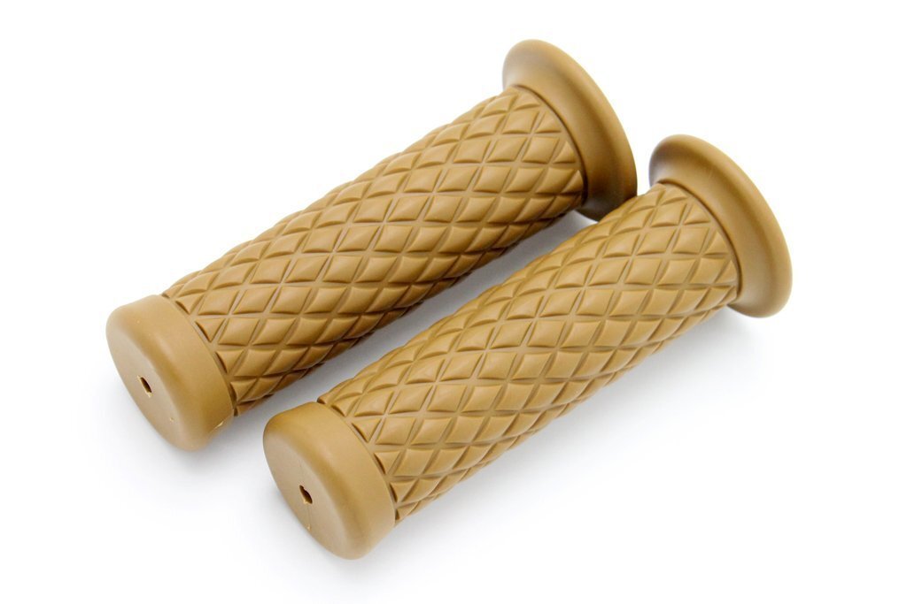 - 送料格安 非貫通 ラバーグリップ 左右セット ダイヤ柄 カーキ ブラウン ゴムグリップ カスタムグリップ エンド付き 汎用 22.2mmハンドル用