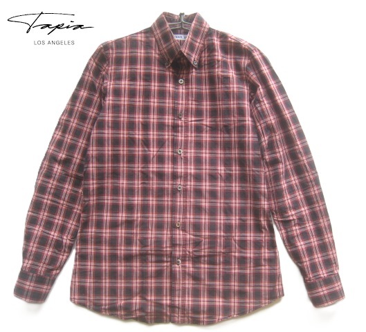 > 極上チュニジア製!!マイケル タピア MICHAEL TAPIA*美シルエット チェック柄ボタンダウンシャツ 38 実寸M 黒×茶×白