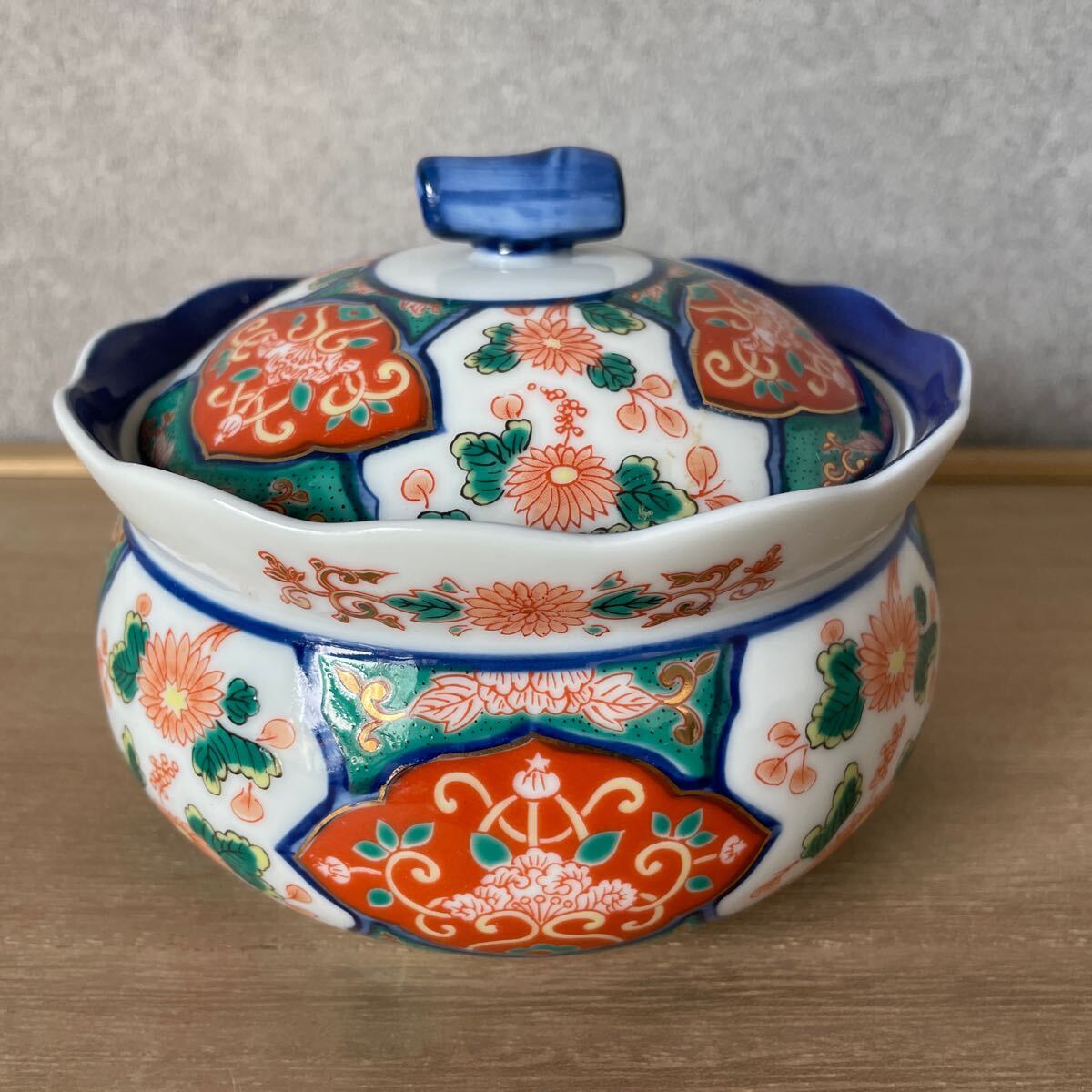 - 錦松梅 有田焼 色絵 蓋物 保存容器 陶器 レトロ アンティーク ヴィンテージ 古道具