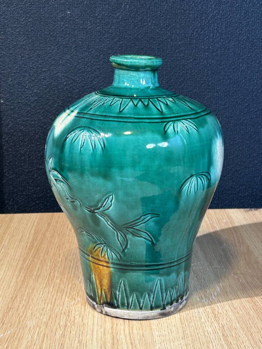 - S8000 青磁花瓶 古玩 花柄 花紋 花器 高さ38センチ 重さ1.6㎏ 骨董品 中国陶器 古瓶 ヤマト100サイズ