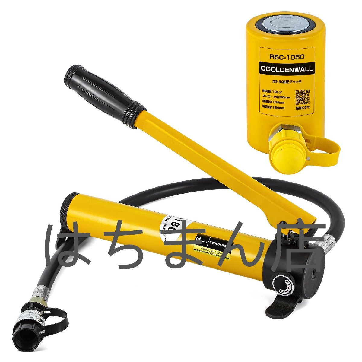 - 油圧ジャッキ 揚力10トン ボトルジャッキ 小型 コンパクト 持ち上げる高さ50mm 持ち運び簡単 (RSC-10T油圧ジャッキ+CP-180油圧ポンプ)