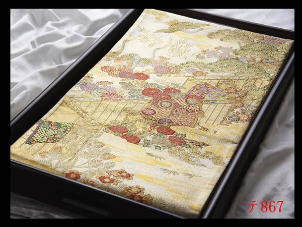 > 蔵【テ867】西陣逸品 振袖可 誰が袖花鳥紋 シルバー色地 気品豊かに 正絹純金糸六通高級美術袋帯◇検◇簪着物名古屋帯和装小物帯締め