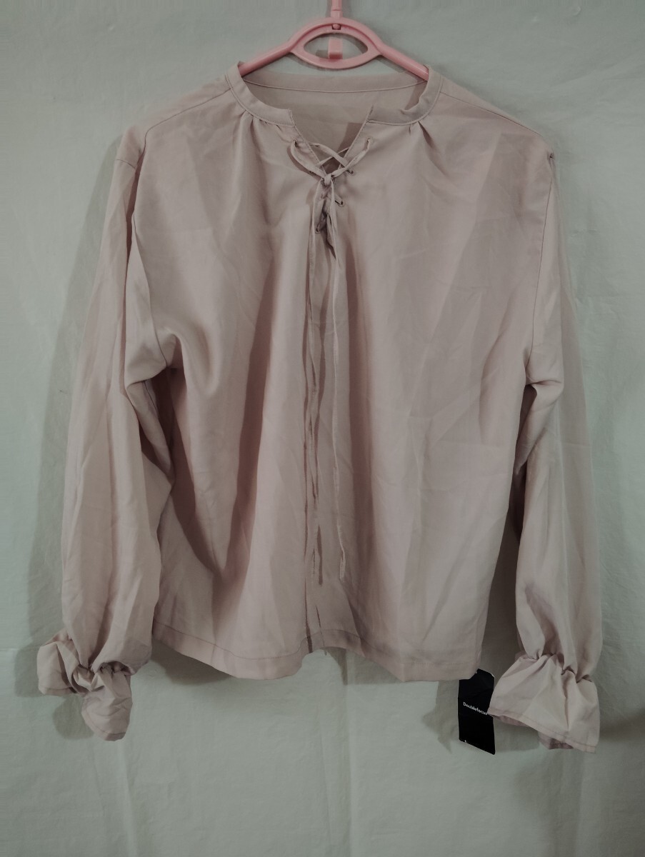- リボン付きのフリル袖が特徴の薄いピンクのキャンディ袖