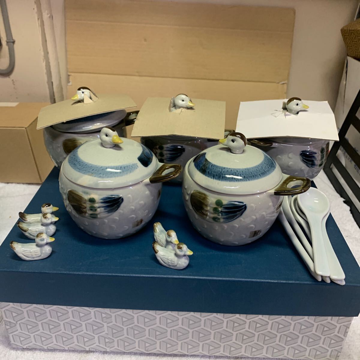 - 茶碗蒸し5客 茶器セット 箸置き まるほん陶器 かるがも
