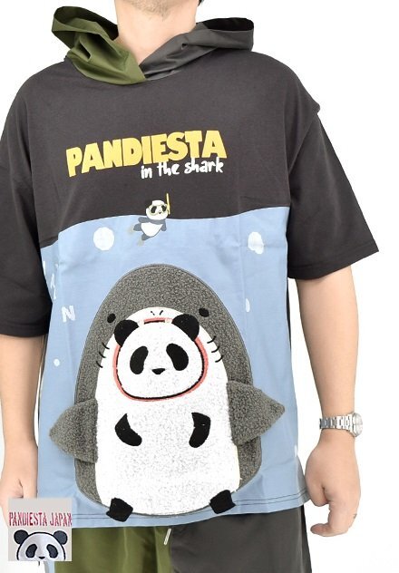> サメパンダBIGパーカー◆PANDIESTA JAPAN チャコールXLサイズ 585750 パンディエスタジャパン ゆったりめ オーバーサイズ ユニセックス