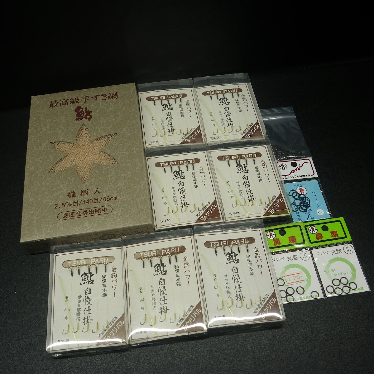 - 最高級手すき網 鮎 京手網 30cm/鮎自慢仕掛 長良8.5号 3本錨/鮎鼻かん 合計12点セット ※未使用在庫品(xa0206)※クリックポスト