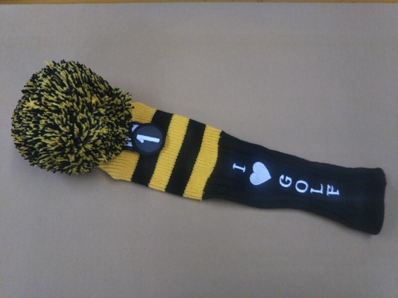 - 【I LOVE GOLF】刺繍 ドライバー用 ニット ヘッドカバー 1W用 460cc対応 アクリル製 ブラック&イエロー 黒&黄 ORLIMAR オリマー 未使用品
