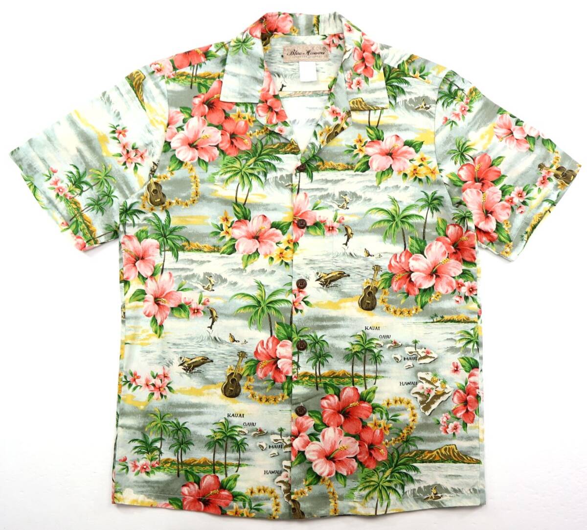 > 美品★ハワイ製★Blue Hawaii ブルーハワイ ハイビスカス柄 ハワイアンシャツ/アロハシャツ/Mサイズ