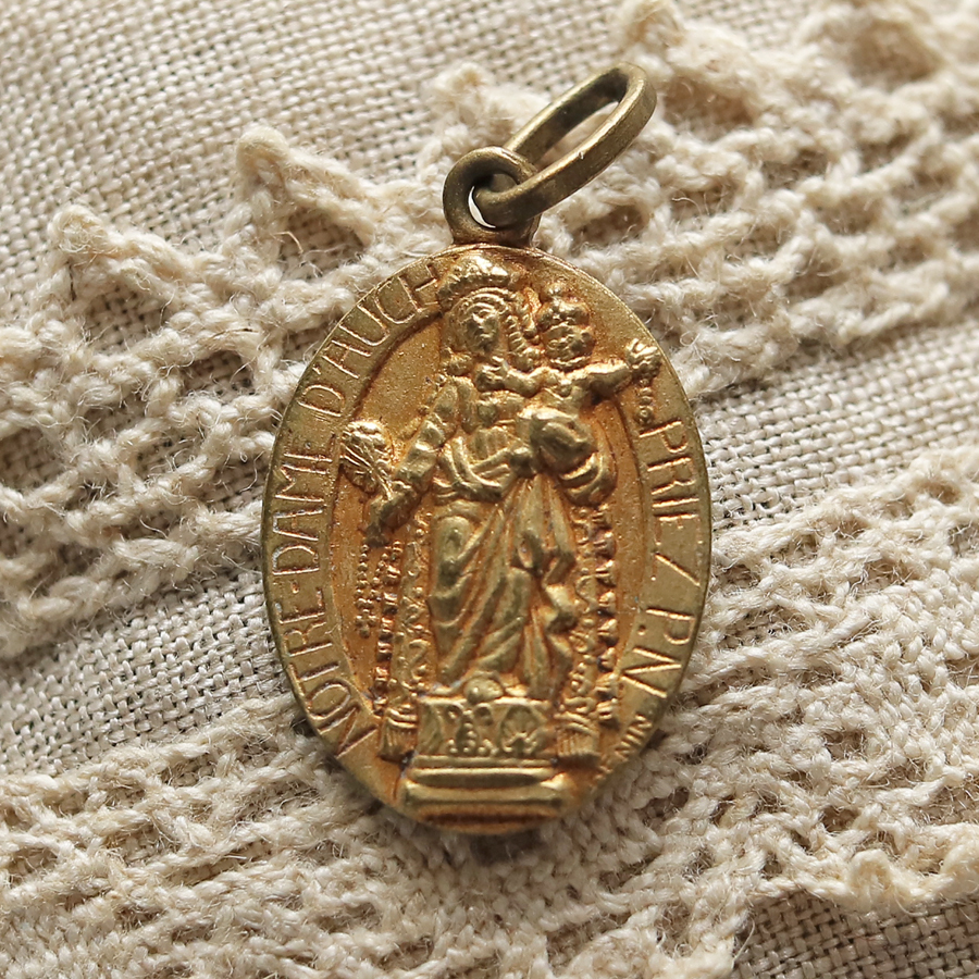 - フランス アンティーク【聖母マリアと幼子イエス】ノートルダム・オーシュ大聖堂 メダイ/マリア チャーム メダル ロザリオ キリスト/J
