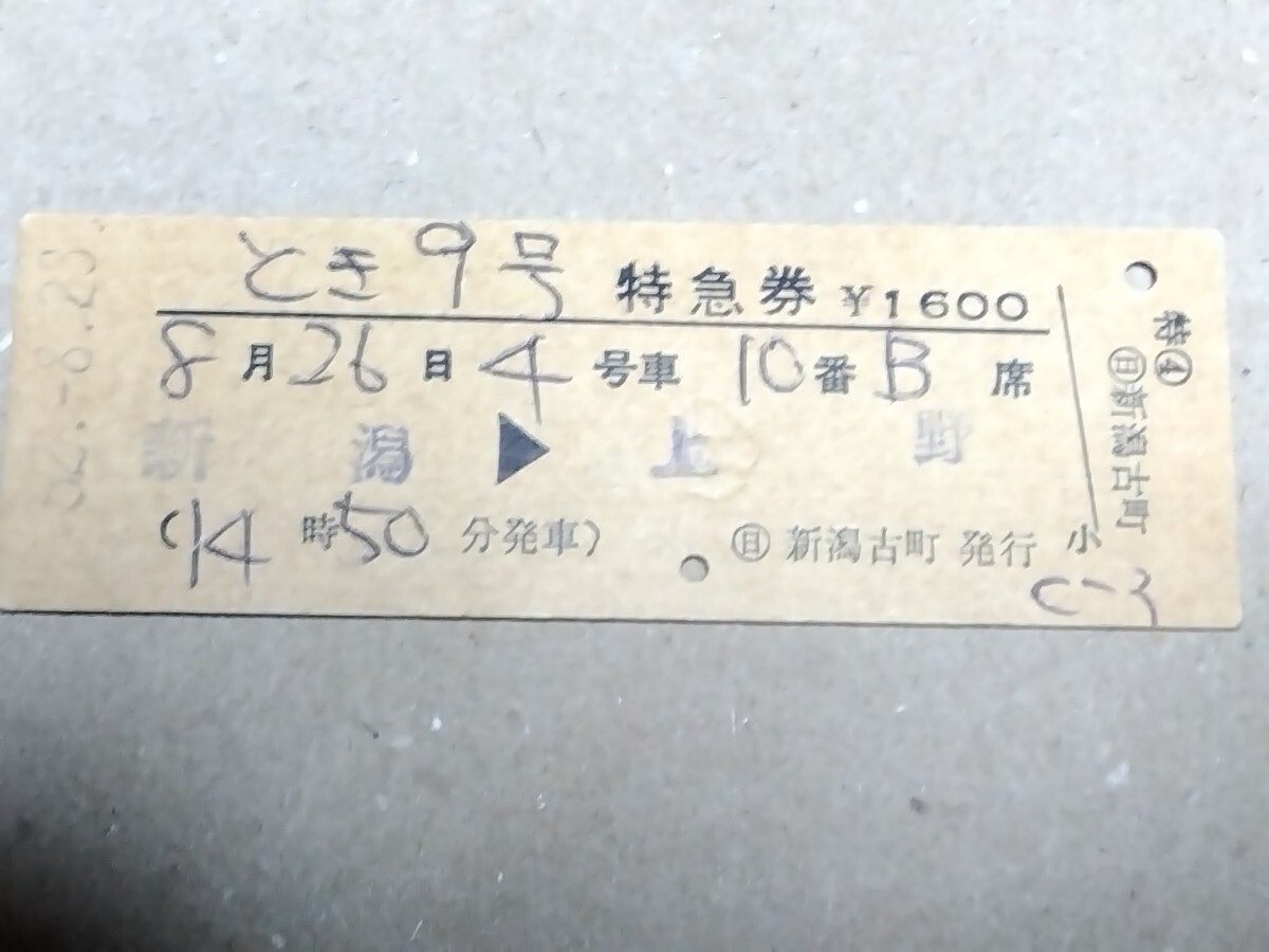 - 250315-245【国鉄きっぷ】D型硬券 新潟→上野 とき9号特急券 昭和52年