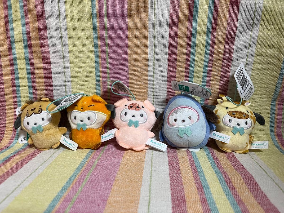 - サンリオ キャラクターズ どうぶつ着ぐるみマスコット シリーズ ライオン編 キツネ編 ぶた編 サメ編 キリン編 ポチャッコ 5体セット ナムコ
