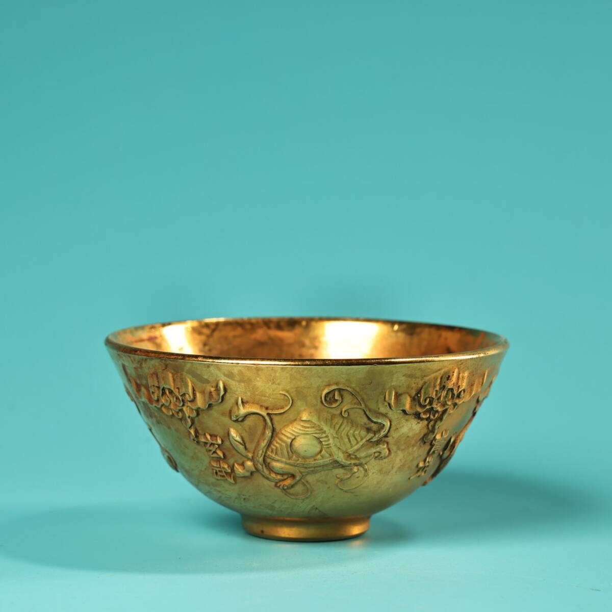 - 【超珍館蔵】銅製 塗金 四神獣紋 茶碗 置物 古賞物 古美術品 稀少珍蔵品