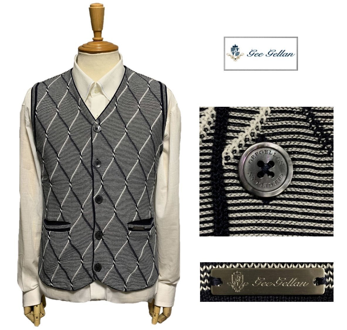 - GEE GELLAN ジーゲラン GEEGELLAN 春夏 前開き ニットベスト 紺x白 配色 size46 M
