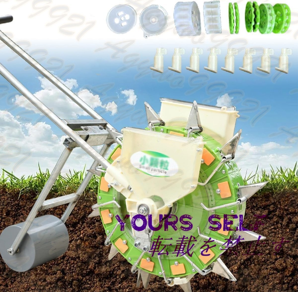 - 種まき機 手動種まき機 野菜播種機 手動プッシュ 2-in-1 多機能 精密種まきツール 播種深さ調整可能 自動種子補充 播種機 4口間隔39cm