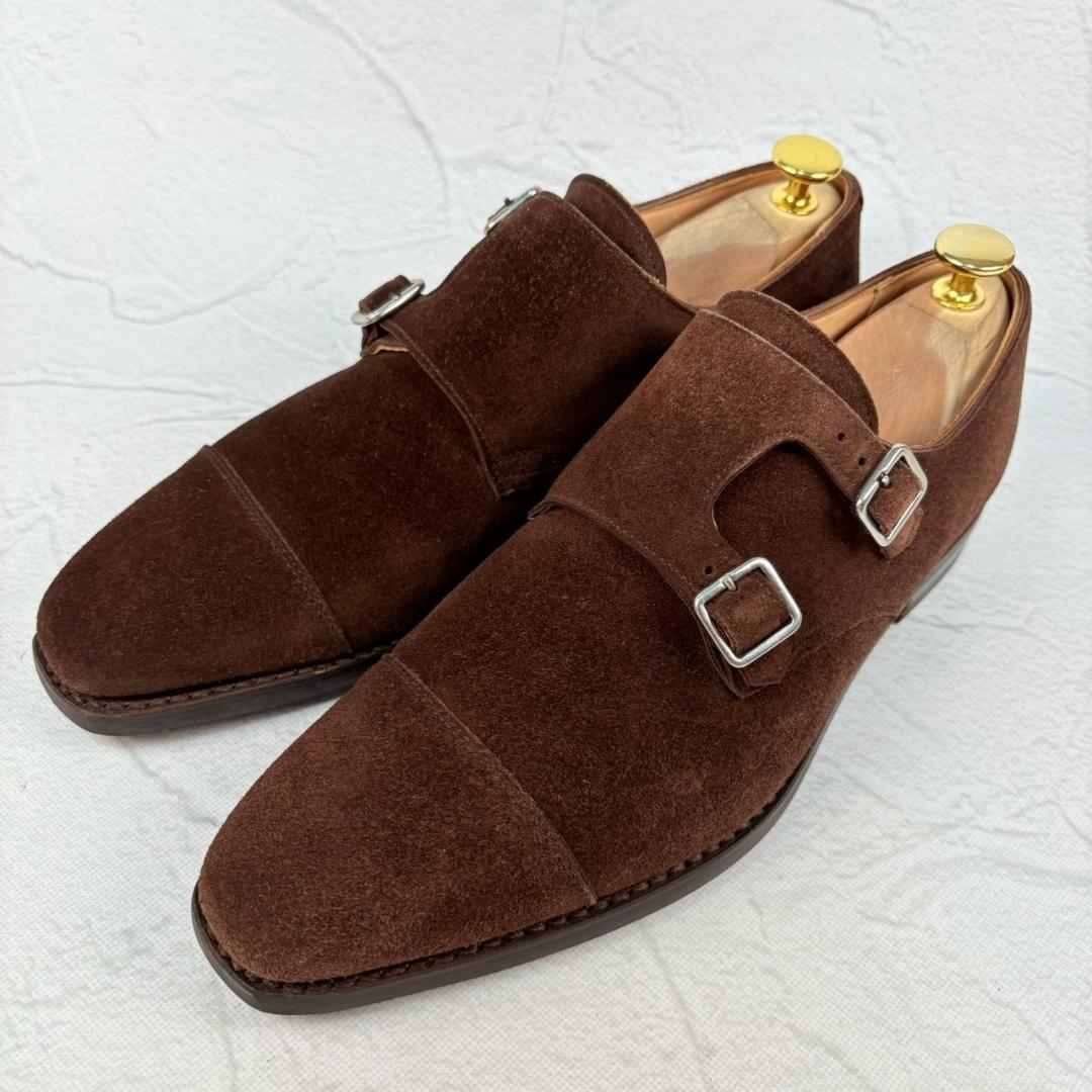 - 【美品】Crockett&Jones クロケットアンドジョーンズ LOWNDES ダブルモンク スエード 6E 24.5cm 茶 ブラウン ビジネス フォーマル ドレス