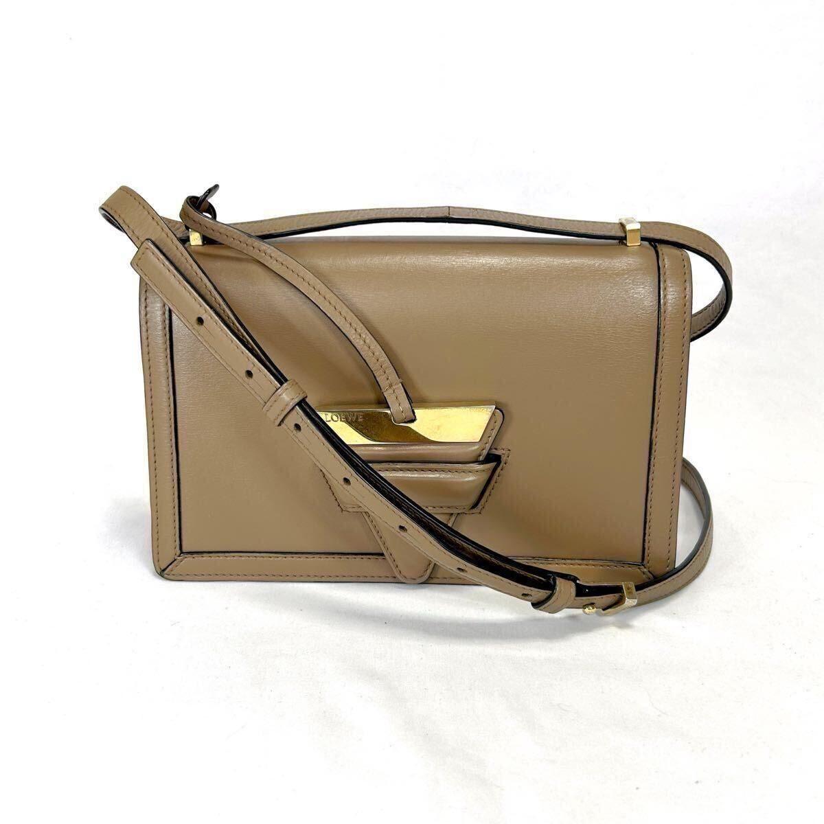 > ロエベ LOEWE バルセロナ ミニショルダーバッグ ベージュ ブラウン レザー ゴールド金具 ポシェット 肩掛け