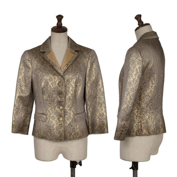 - プラダPRADA シルク混フローラルジャガードジャケット ゴールドグレー40