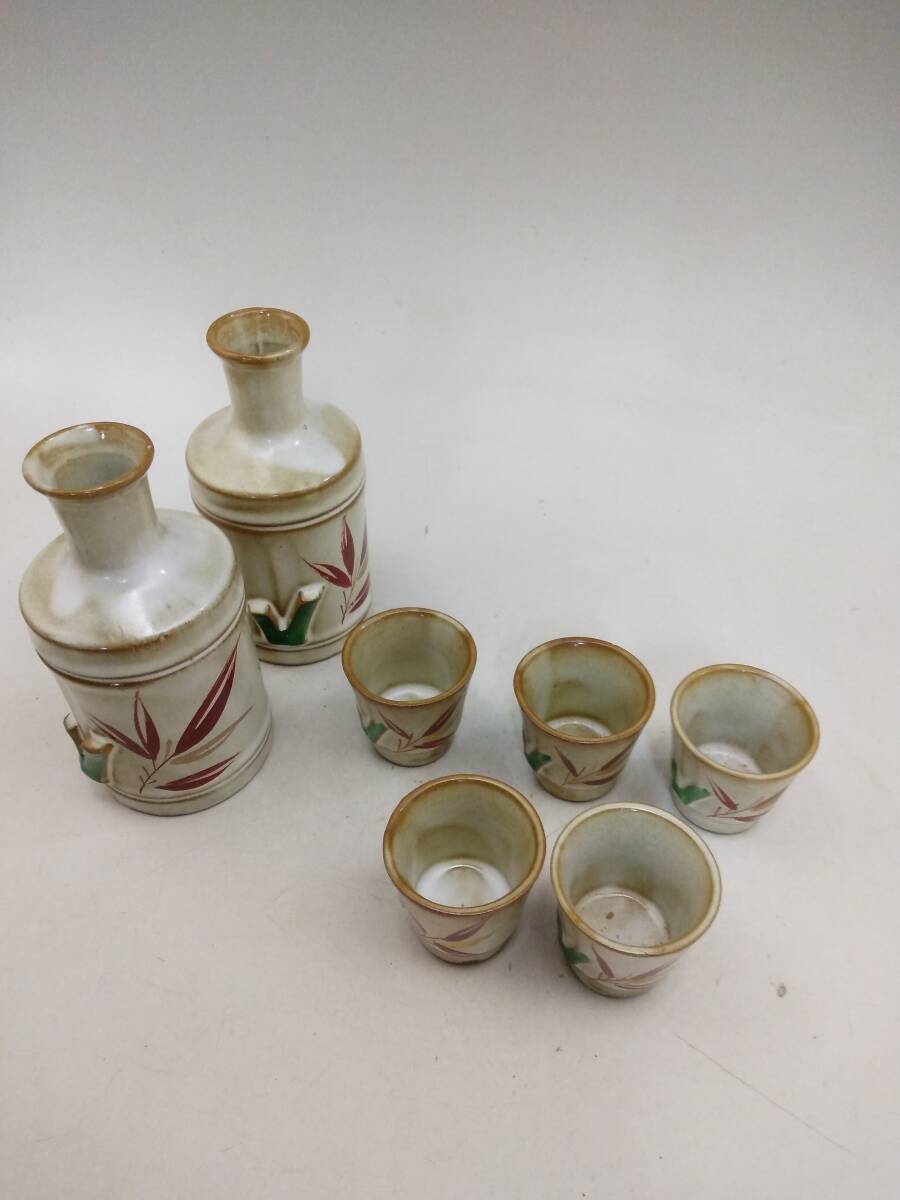 - 0505-0006 中古★徳利 お猪口 5客セット 竹 笹 模様 酒器 レトロ