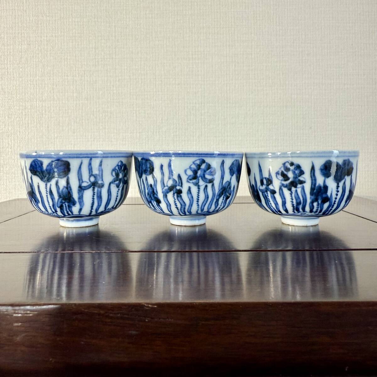 - 時代 煎茶道具 道八銘 染付 煎茶碗 3客/ 唐物 青花 古陶磁器 古染付 煎茶器 茶道具 古美術 骨董 盃 杯 酒器 猪口 中国美術 急須 高橋