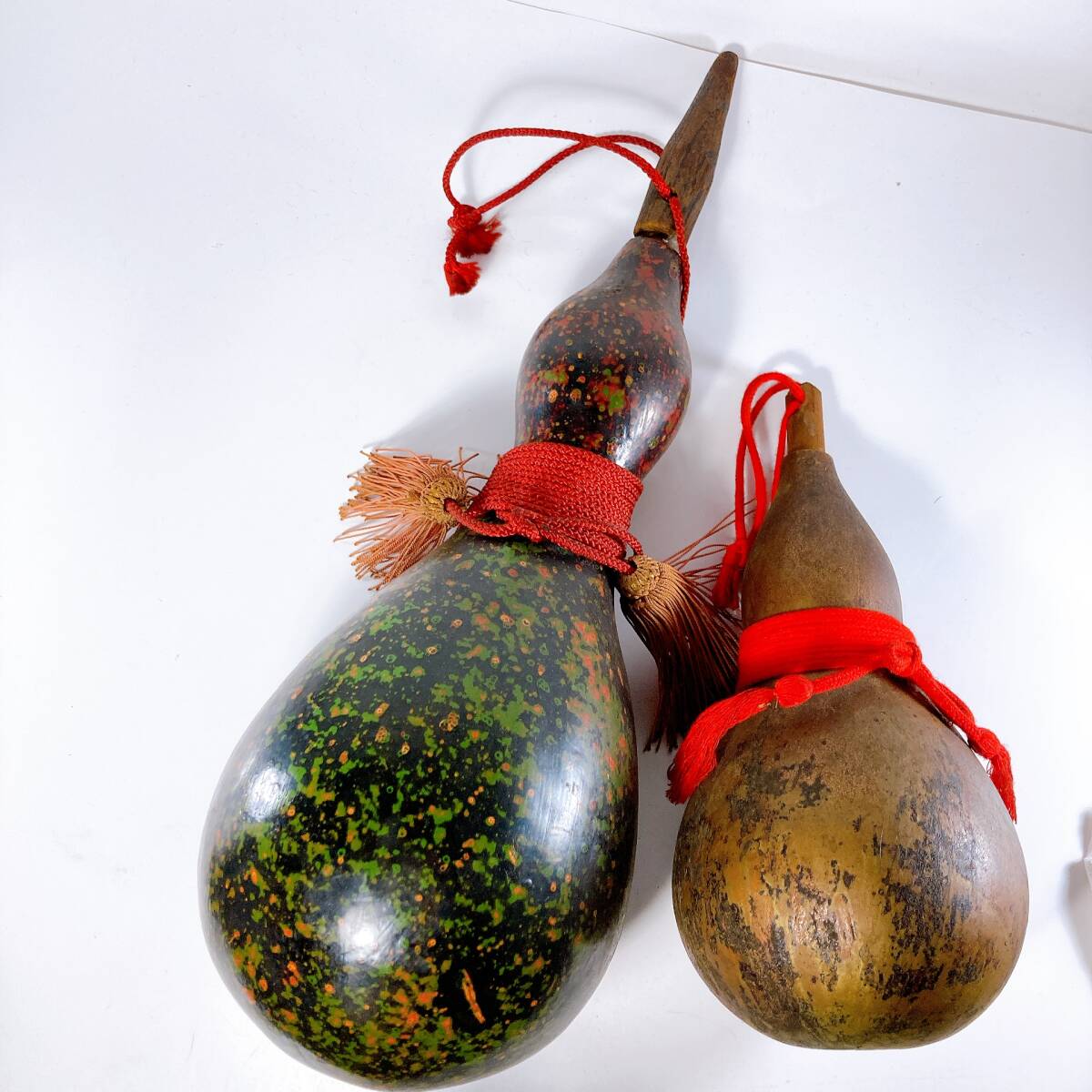 - |1735|特大ひょうたん・研き出し(約43㎝)・ひょうたん(約25㎝)2点まとめ 縁起物・瓢箪・レトロ・アンティーク・置物