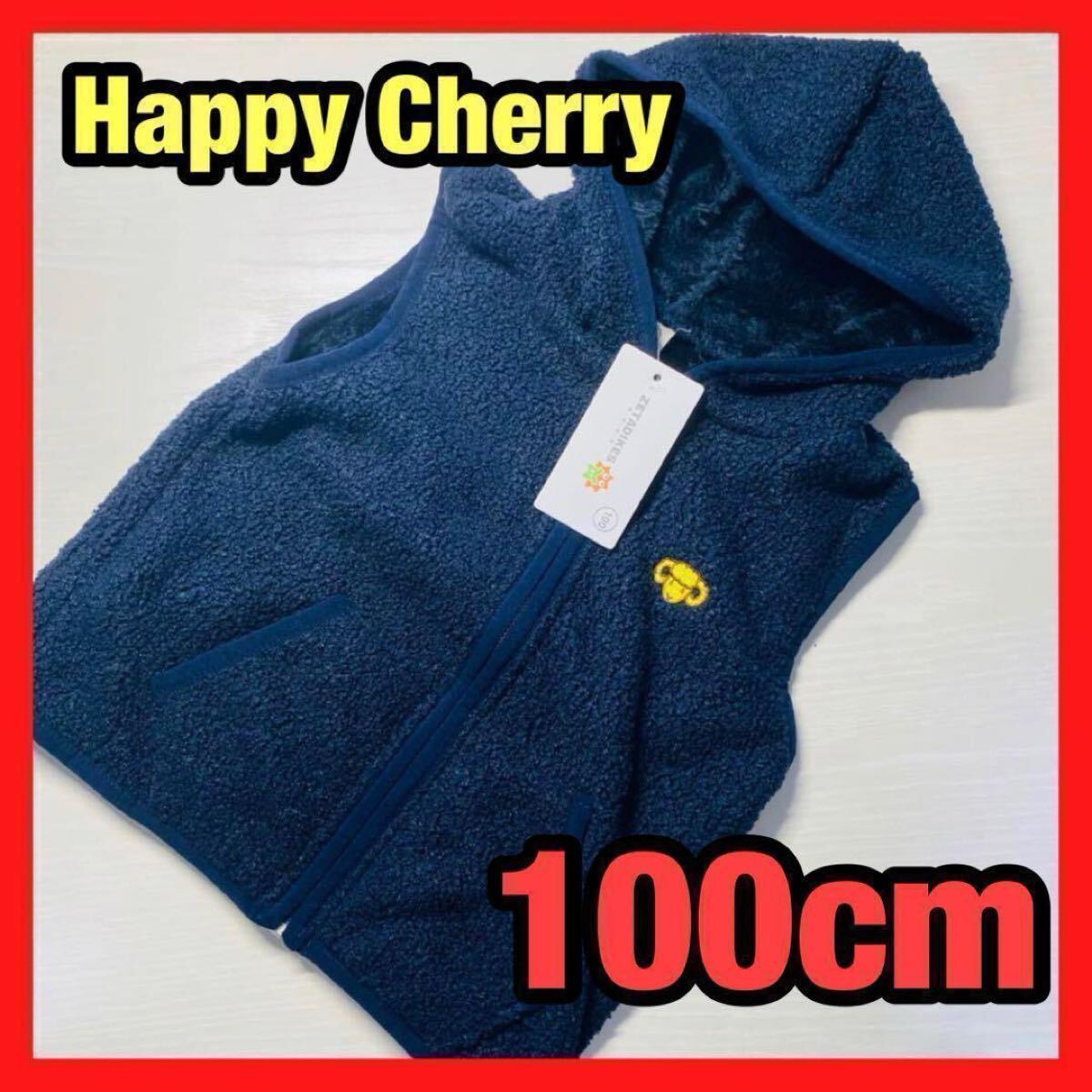 > Happy Cherryキッズボアベスト紺 100cm フリース 無地 ベスト