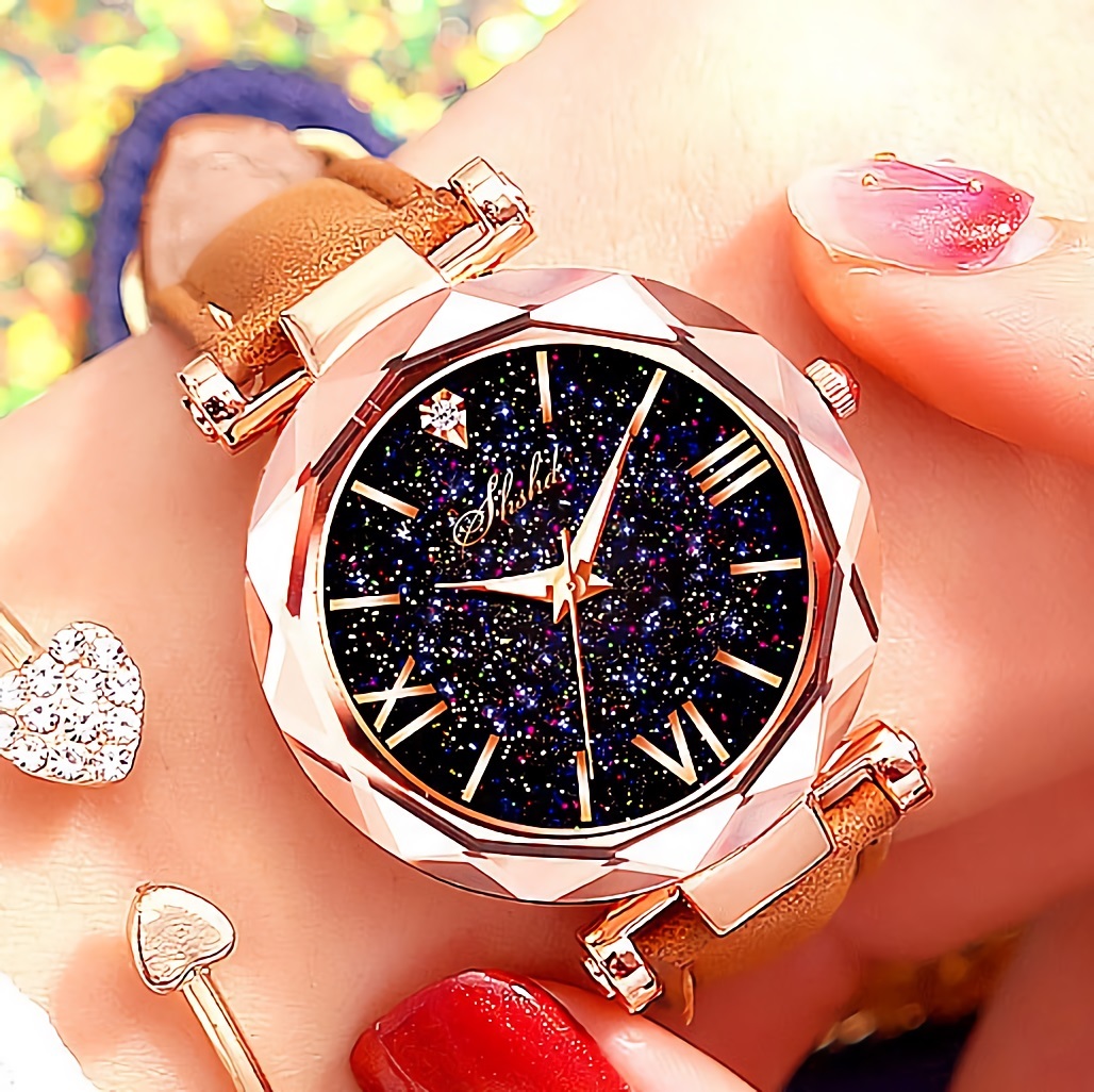 - 新品★送料無料★虹色星空 ダイヤモンド銀河夜空 K18PGFゴールドウォッチブラウン腕時計 誕生日プレゼント旅行初春連休ギフト国内発送