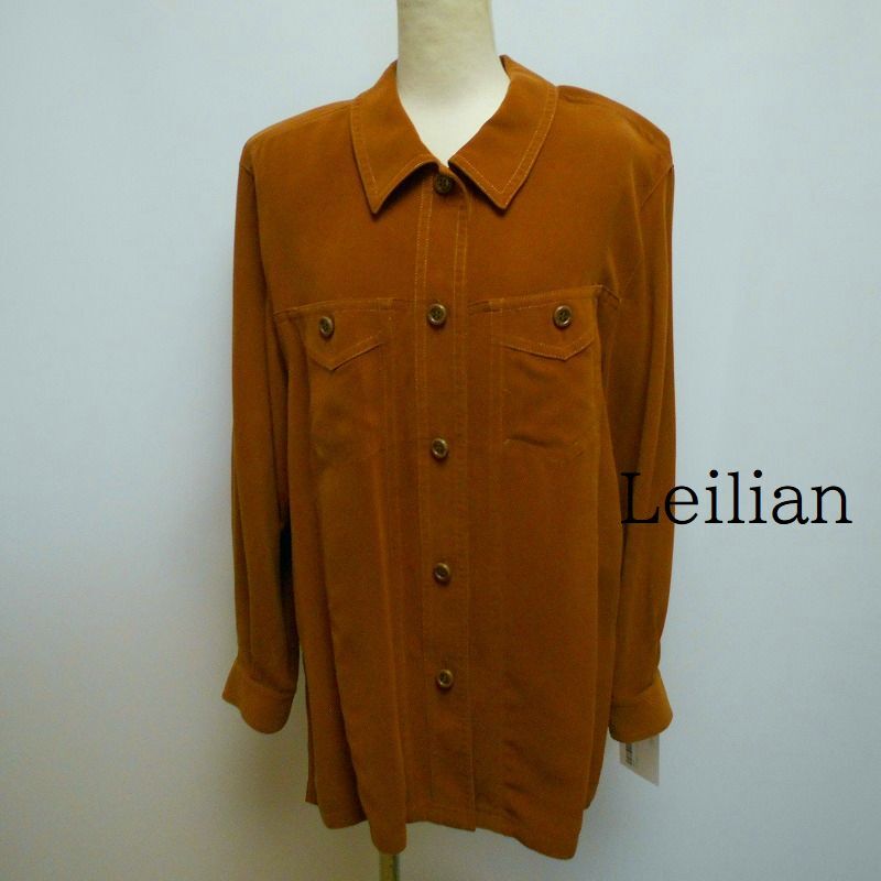- 937207 Leilian レリアン 茶系 長袖 シャツ ブラウス 13+