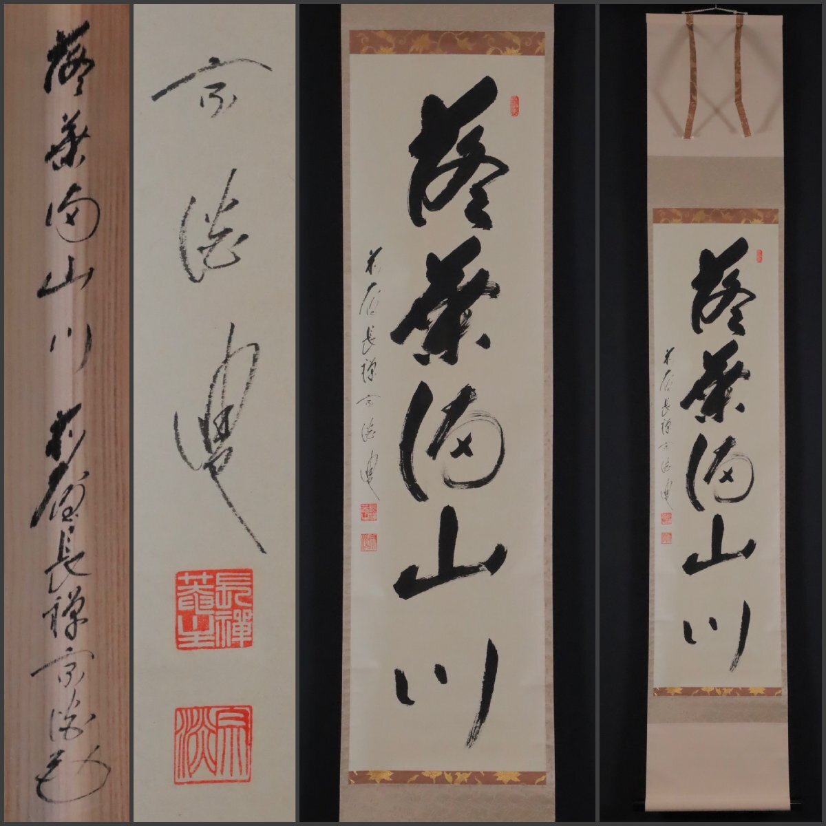 - 【模写】吉】12122 矢野一甫 書「落葉満山川」 共箱 臨済宗 大徳寺派 蔵雲寺住職 前大徳 仏教 書 茶掛け 茶道具 禅語 掛軸 掛け軸 骨董品