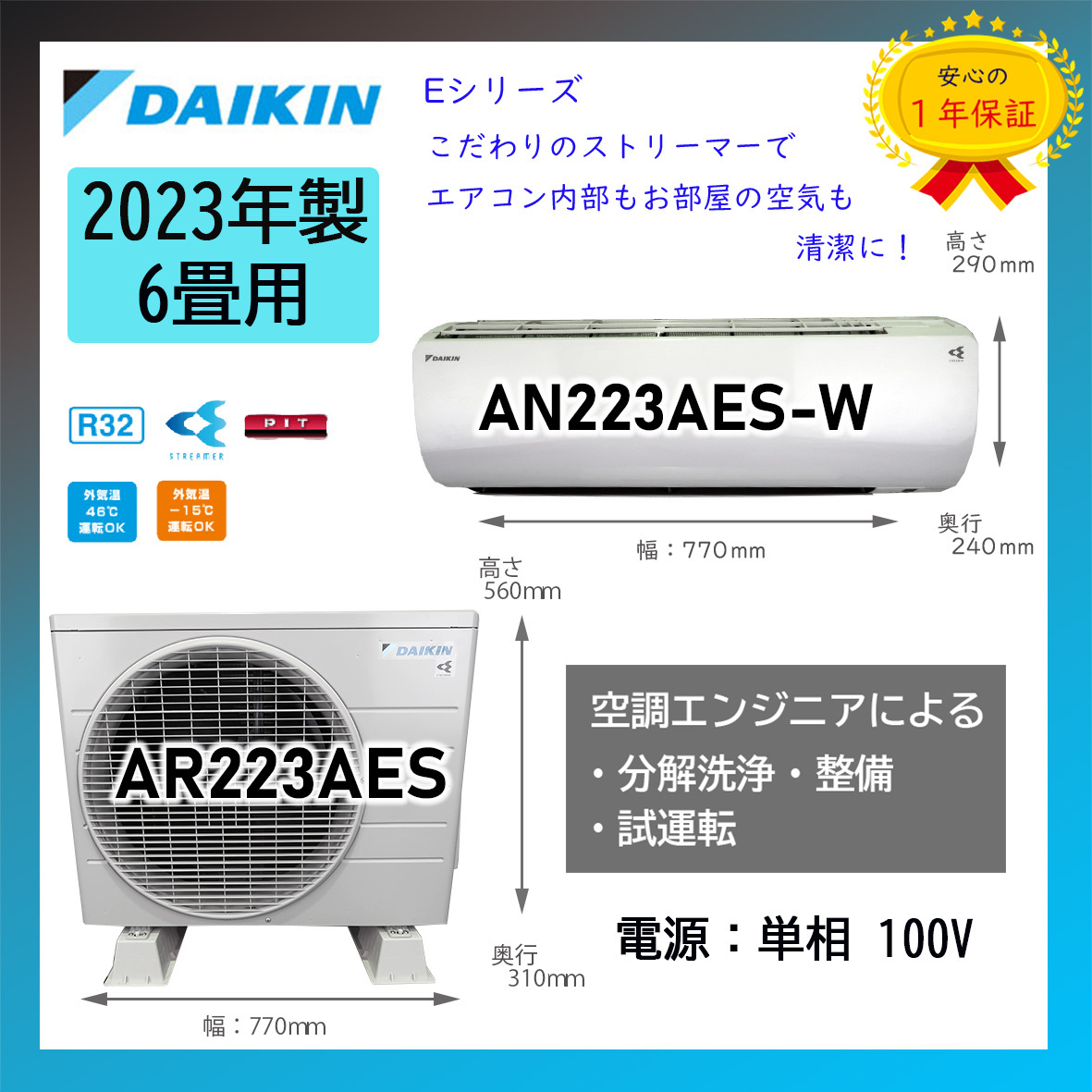 - 保証付!ダイキン☆2023年製ルームエアコン☆ストリーマー6畳☆D445