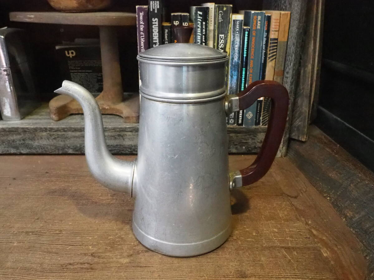 - 【フランス蚤の市アルマイトコーヒーポット】ドリッパー骨董やかん喫茶店アンティーク古道具ケトルミル薪ストーブカフェ店舗什器紅茶