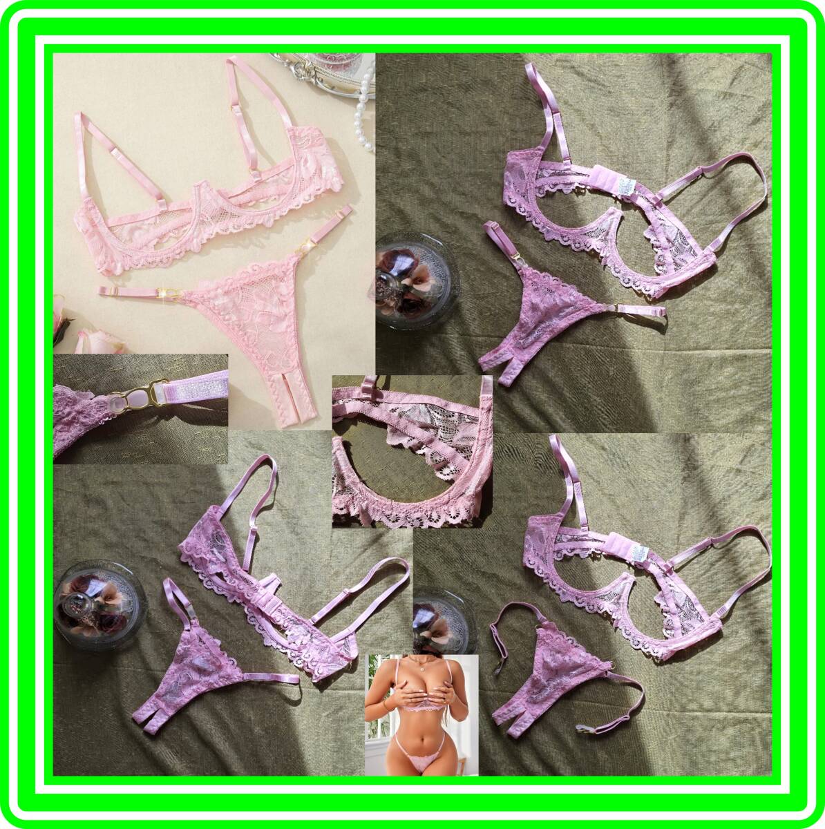 - ★超素敵★アンダーワイヤー★ランジェリーセット★オープンデザイン★フックで外せるサイドライン★ライトピンク★大人可愛い★HAK68