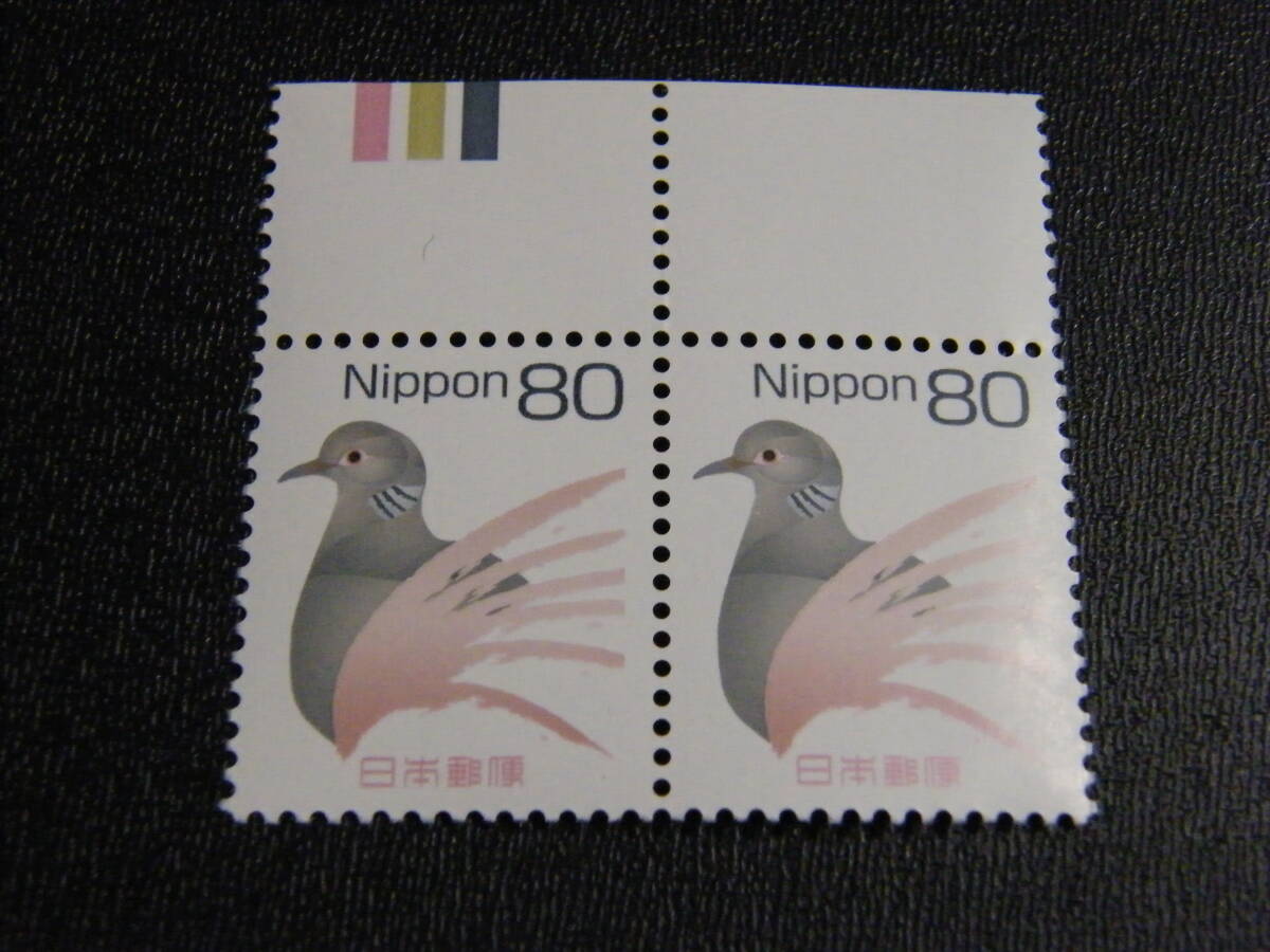 - キジバト 80円 カラーマーク上 綴じ穴無 2枚ペア 未使用 平成切手(CM付)
