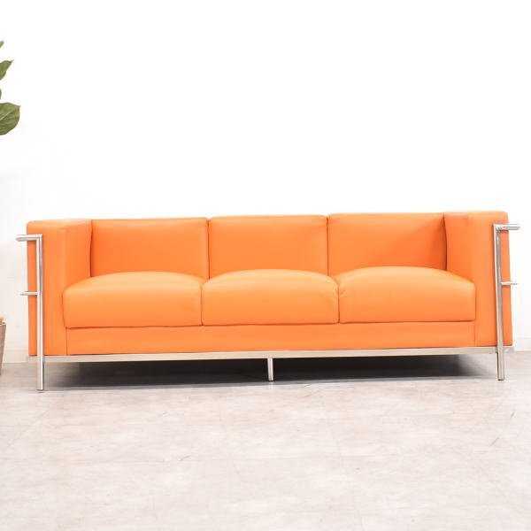 - 【限定送料無料】オレンジ LC2 ル・コルビジェ デザイン 3Pトリプルソファ 3人掛け アウトレット家具 ソファー【新品 展示品】0055807