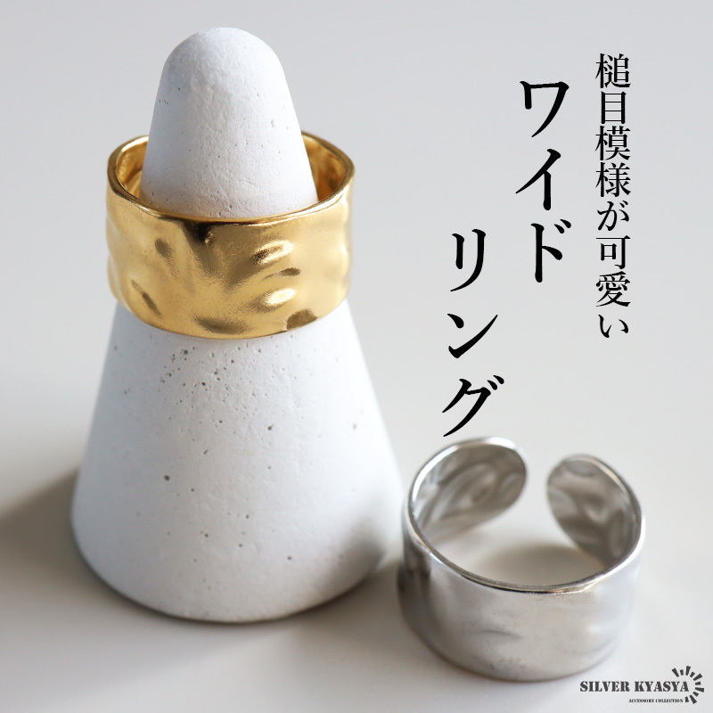 > (シルバー) ステンレス ゆがみリング ワイドリング 槌目 凹凸 ゴールド 18K GP フリーサイズ 女性 金属アレルギー対応