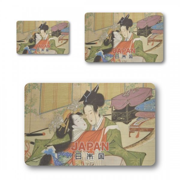 > 日本製 浮世絵 ステッカー 3点セット 四角 男女 ヘアライン マット 新品 日本の美しさ お土産 プレゼント おしゃれ シンプル 和柄 着物
