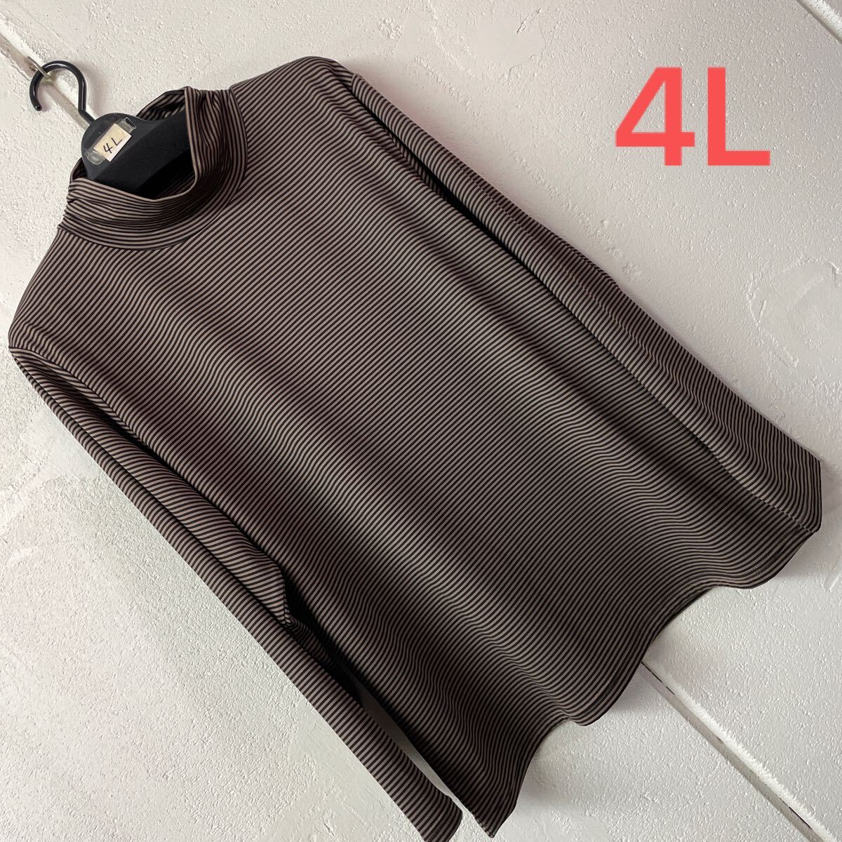 - 4Lサイズストレッチ裏微起毛長袖ボーダーカットソー茶黒