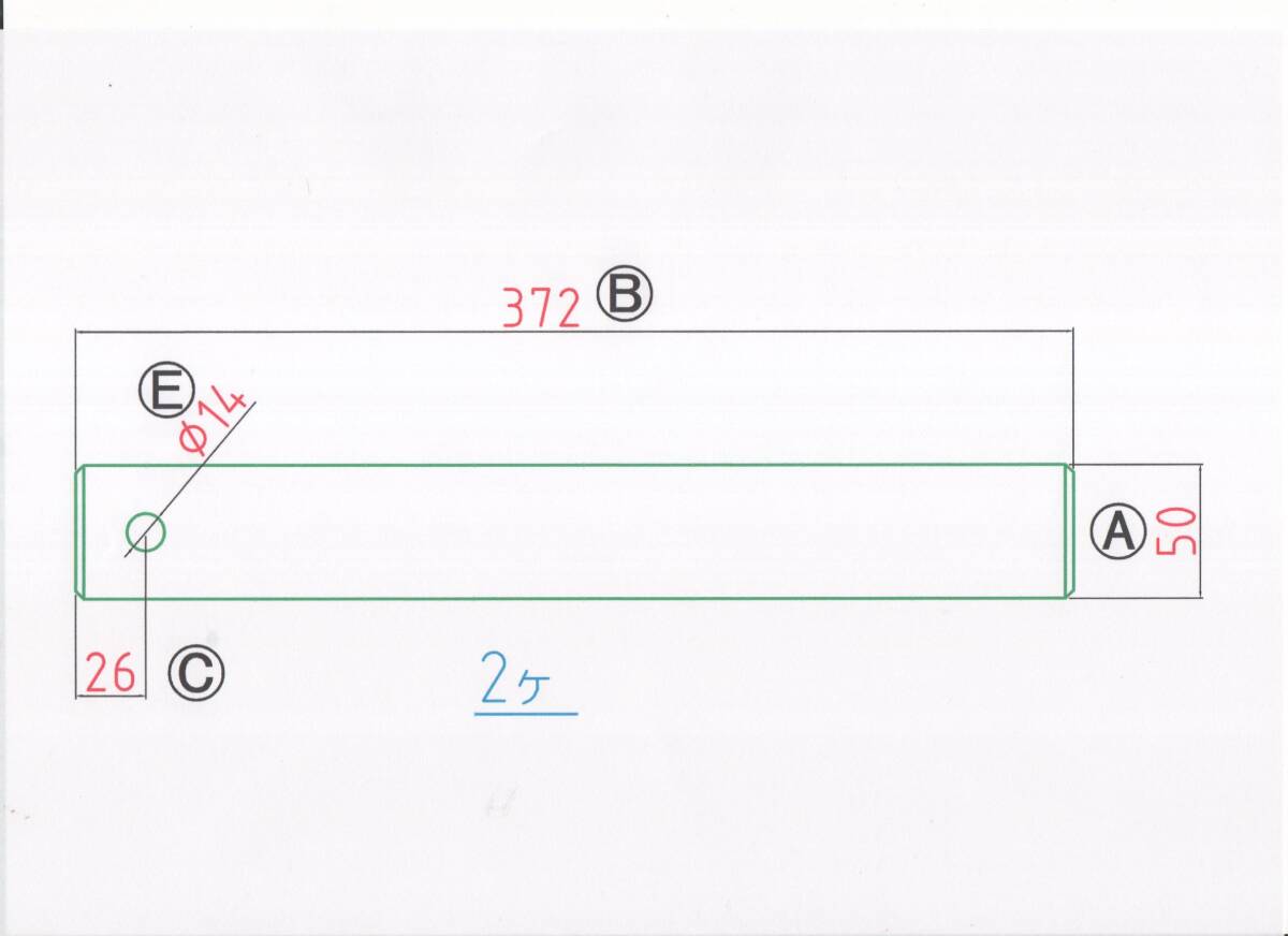 - NO 1826 Φ50用 全長372mm バケットピン 2本セット 重機 パワーショベル