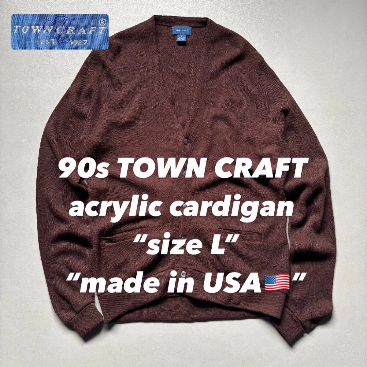 - 90s TOWN CRAFT acrylic cardigan “size L” made in USA 90年代 タウンクラフト アクリルカーディガン 茶色 ブラウン アメリカ製 USA製