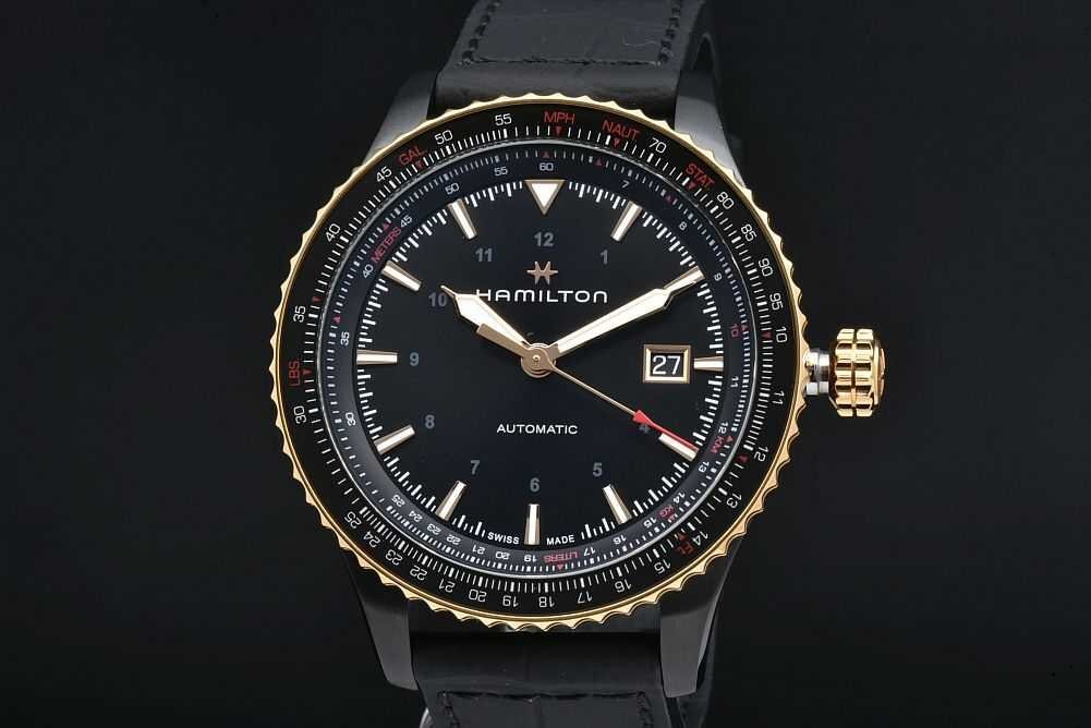 - ハミルトン H76635730 カーキ アビエイション コンバーター メンズ PVD/革 オートマ 裏スケ H766350 黒文字盤【正規・新品】