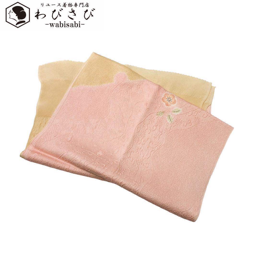 > 和装小物 帯揚げ 正絹 染め分け 絞り 花模様 曙色 C-5667 着物 きもの kimono 和服 和装 中古 リサイクル着物 【送料無料】