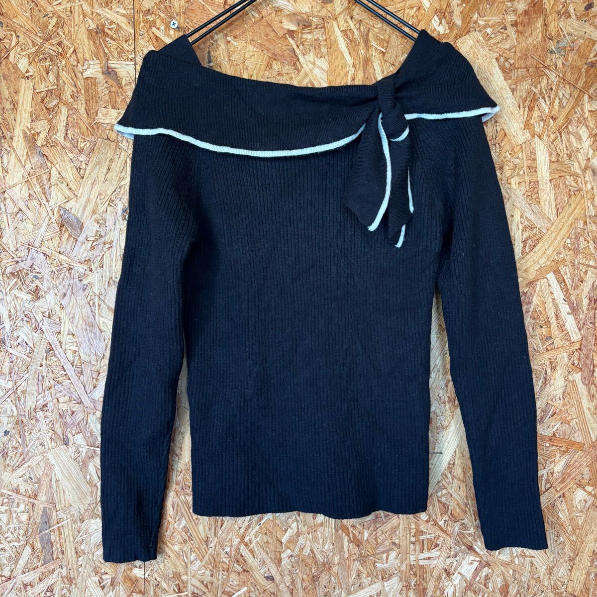 - BERADIANCE 長袖 ニット セーター リブ リボン リブニット トップス ブラック レディース 4097