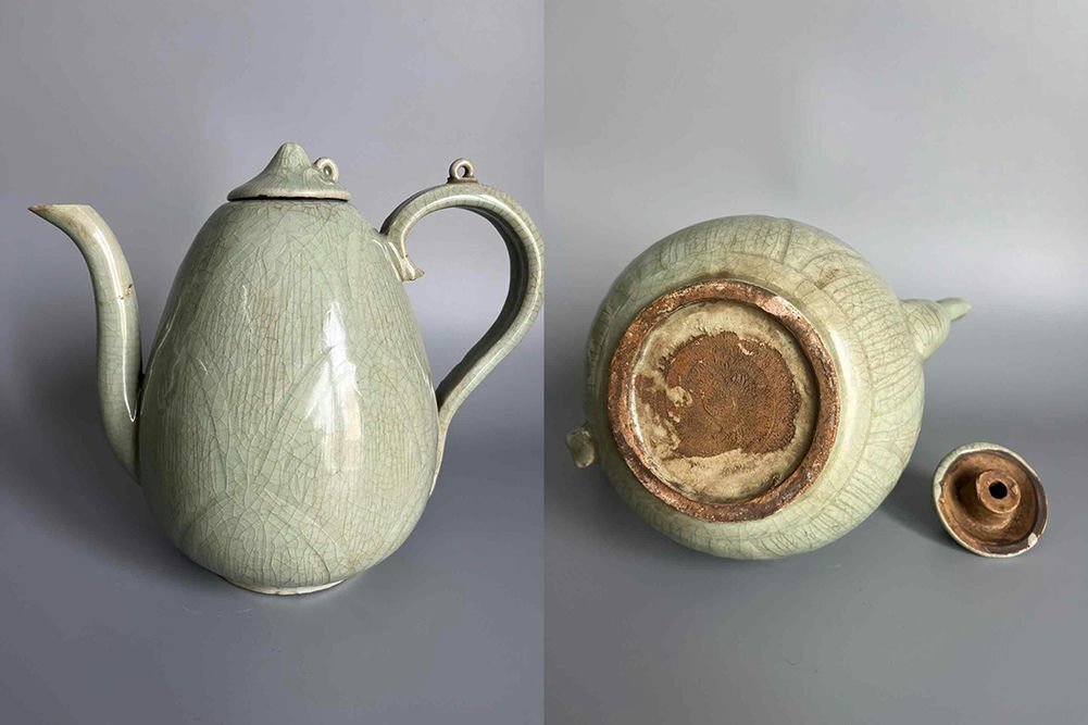 - ▼渡鶴羽▼R2927コレクター放出 朝鮮古美術 高麗磁 李朝時代 古高麗 高麗青磁竹節紋壺