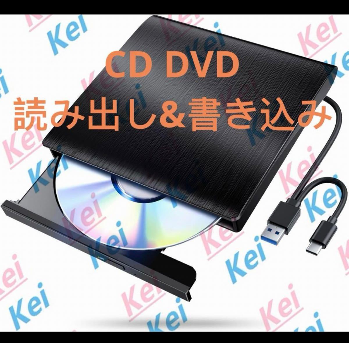 - 【2024革新モデル】 外付けDVDドライブ CD DVDドライブ 外付け 高速 USB 3.0&Type-Cデュアルポート 読み出し&書き込み CDドライブ 外付け